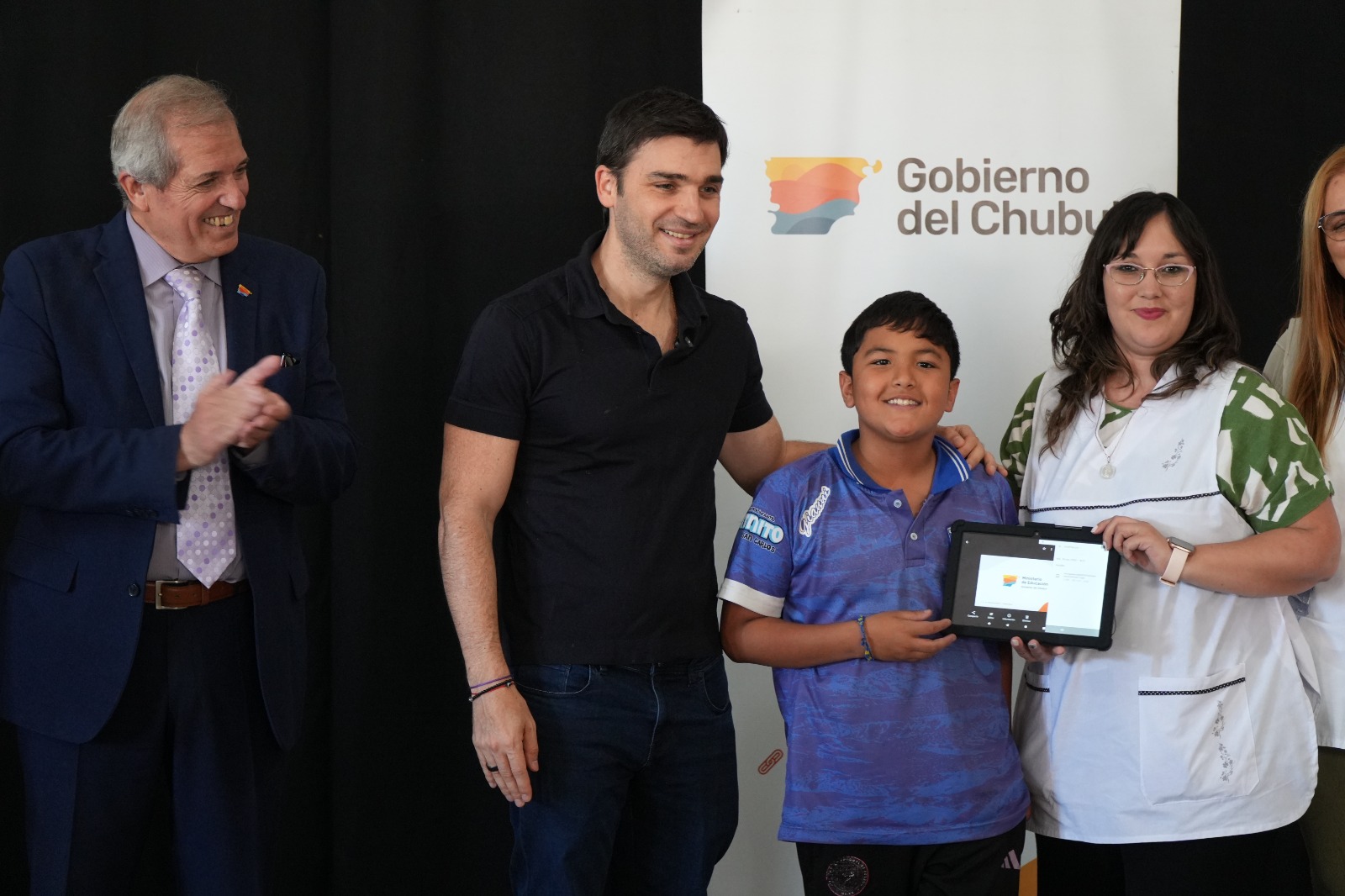El mandatario hizo entrega de 168 tablets a alumnos de distintos establecimientos del Valle Inferior del Río Chubut y destacó el rol del Estado en dotar de tecnología e internet satelital a escuelas de la provincia. “Hoy el mundo nos exige alfabetización digital y por eso nos comprometimos a que nuestros chicos tengan las mismas herramientas que los que nacen en cualquier otra provincia o ciudad más grande”, expresó Torres durante el acto.