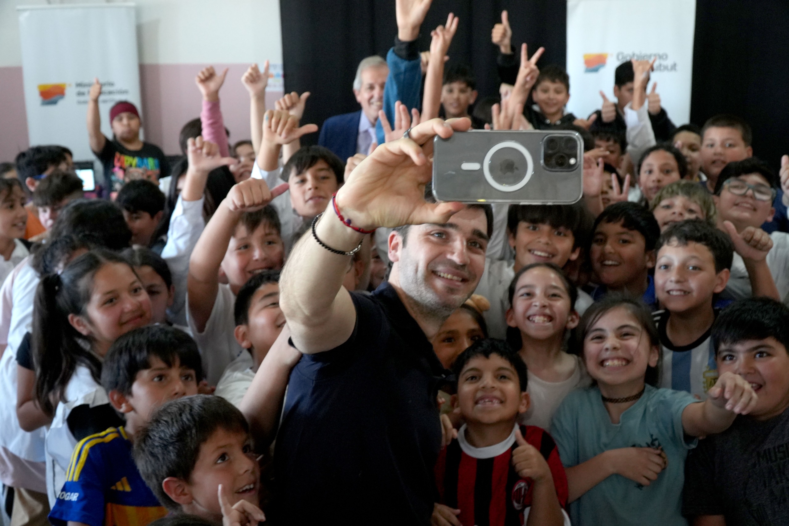 El acto tuvo lugar en la Escuela N° 185 de Rawson y en la ocasión, el mandatario estuvo acompañado por el ministro de Educación del Chubut, José Luis Punta; entre otras autoridades.