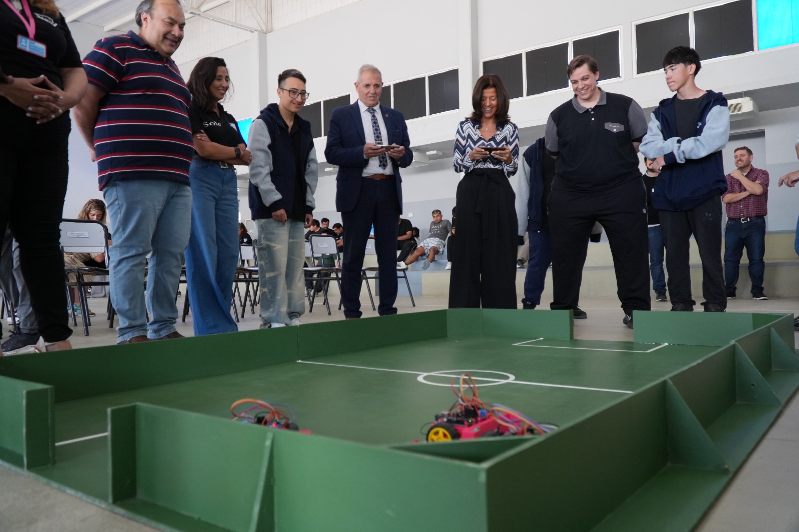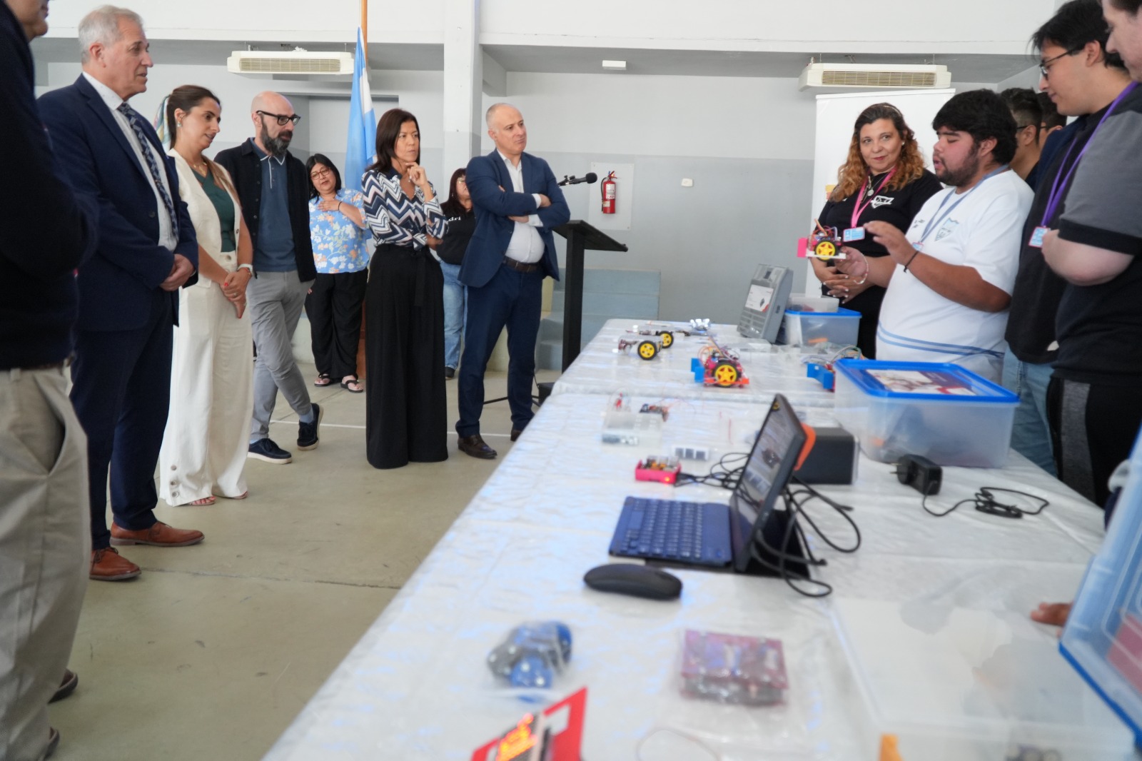 Durante la jornada, las autoridades recorrieron las instalaciones y tomaron contacto directo con las y los estudiantes, con especial énfasis en los espacios destinados al trabajo con tecnología y robótica. En ese marco, el ministro José Luis Punta expresó: “Quiero agradecer por el vínculo a quienes hoy nos visitan, pero también a todo el equipo docente, las familias y los chicos que hacen posible que estas cosas pasen en las escuelas de Chubut. Este es el resultado del trabajo de todos juntos, y gracias a eso hoy podemos ver lo que esta escuela ha podido hacer y hace cada día.”